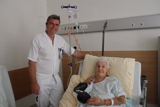Prim. Dr. Markus Wille mit der 85-jährigen Patientin Leopoldine Schöfbeck.