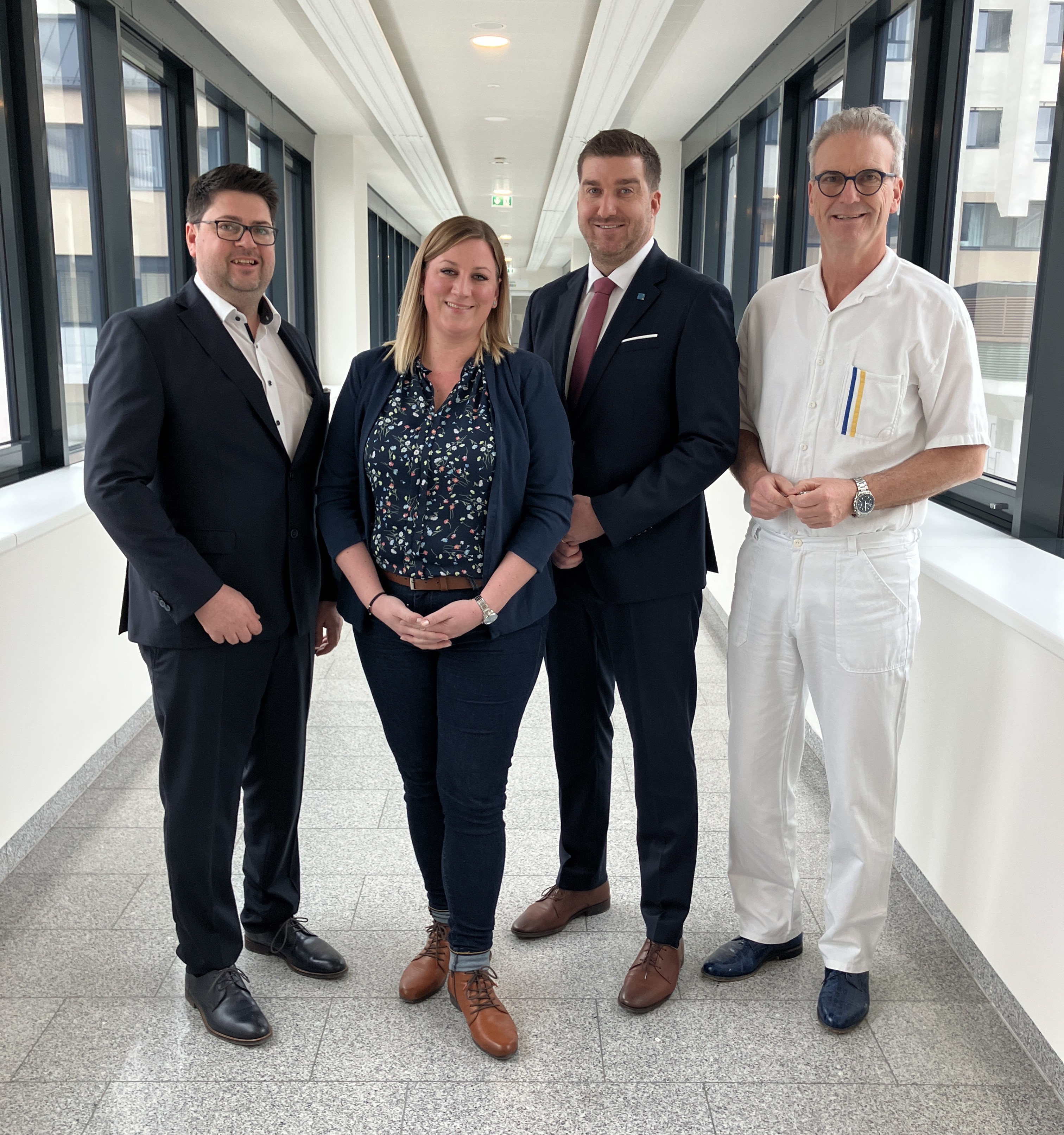 Marlene Bugl, BA MSc (Mitte) mit Ärztlichem Direktor Prim. Dr. Ronald Zwrtek, MAS MBA, Kaufmännischem Direktor Florian Trummer, MLS MBA und dem Pflegedirektor PhDr. Christian Pleil, MSc MLS MBA des Landesklinikums Mistelbach-Gänserndorf (v.l.)