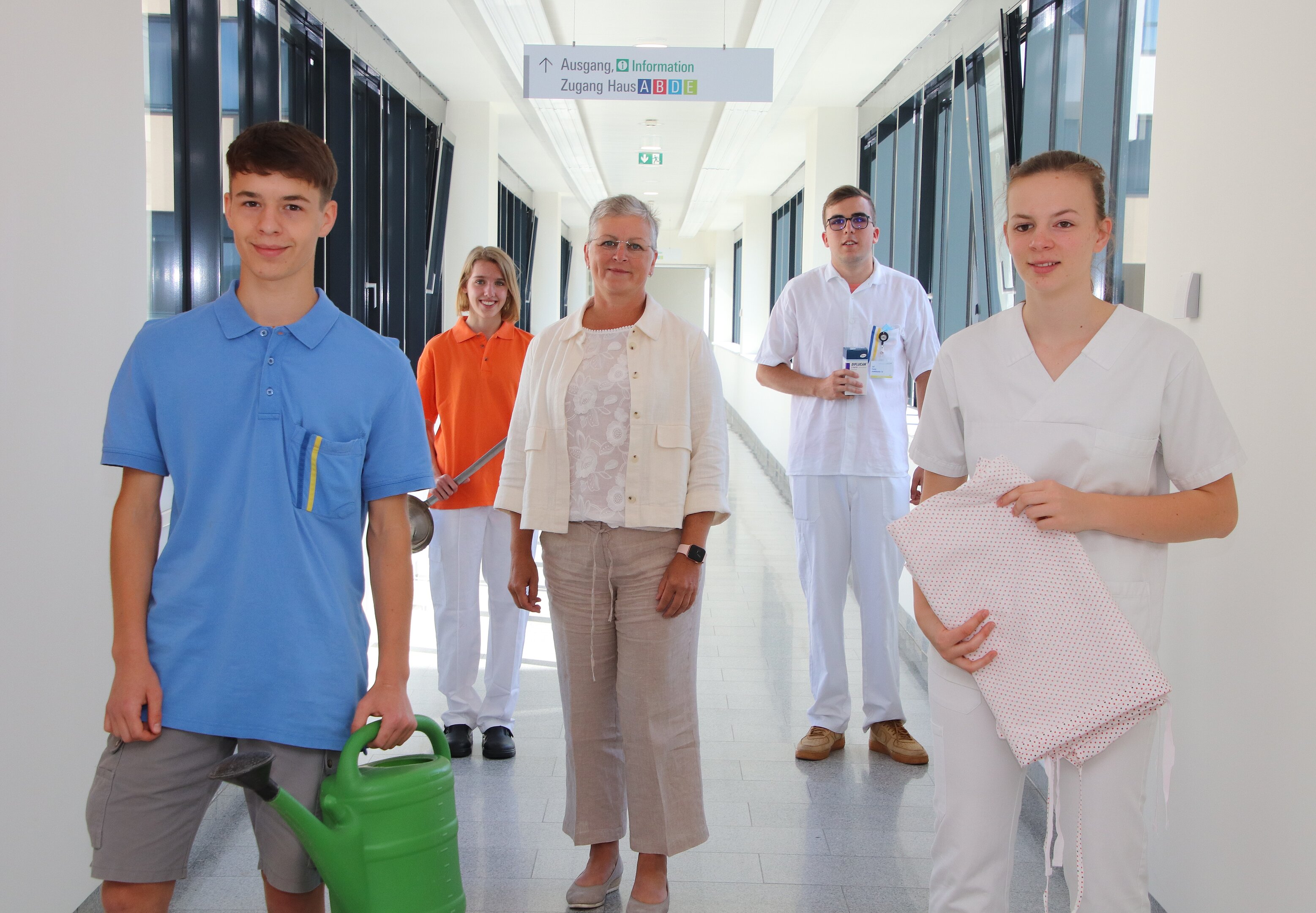 Einige der Ferialarbeitnehmer des Landesklinikums Mistelbach-Gänserndorf des Monats Juli mit der Kaufmännischen Direktorin Jutta Stöger, MSc (Mitte): Sebastian Rabl, Anja Dorn, Felix Fischer und Lisa Ollinger (v.l.).